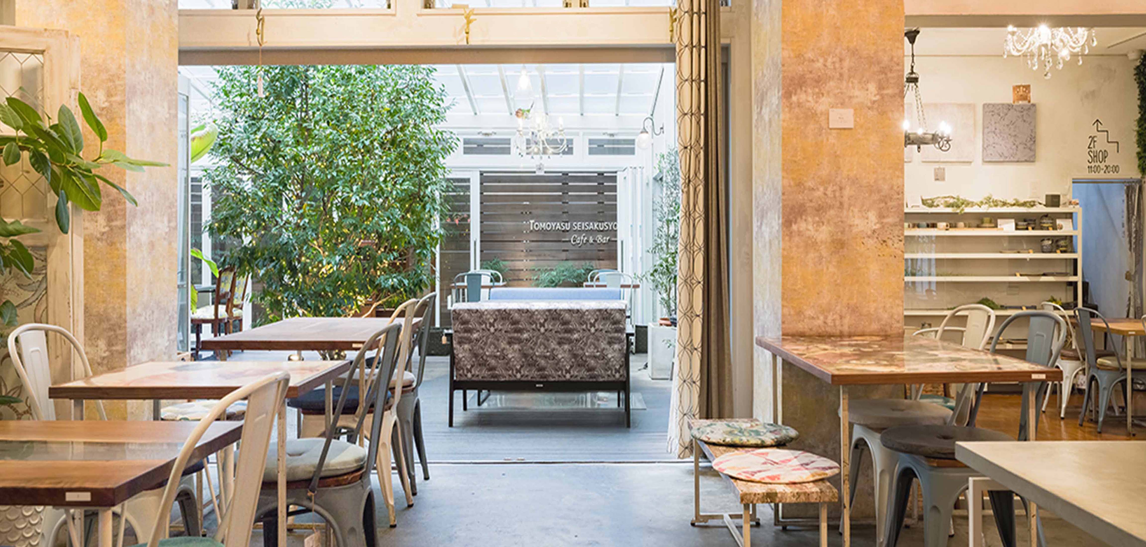 そんな友安製作所が運営する「友安製作所カフェ&バー 阿倍野」は、日本現代建築に功績を残した建築界の巨匠・村野藤吾氏が、自身の事務所「村野・森建築事務所」として約50年前に設計し実際に使用されていた貴重な歴史的建造物を村野建築のこだわりを残しながら、おしゃれなカフェ&バーに自社のリソースでリノベーションした関西の人気店です。開放的な店内の大人カジュアルな空間でゆったりとした時間をお過ごしいただけます。